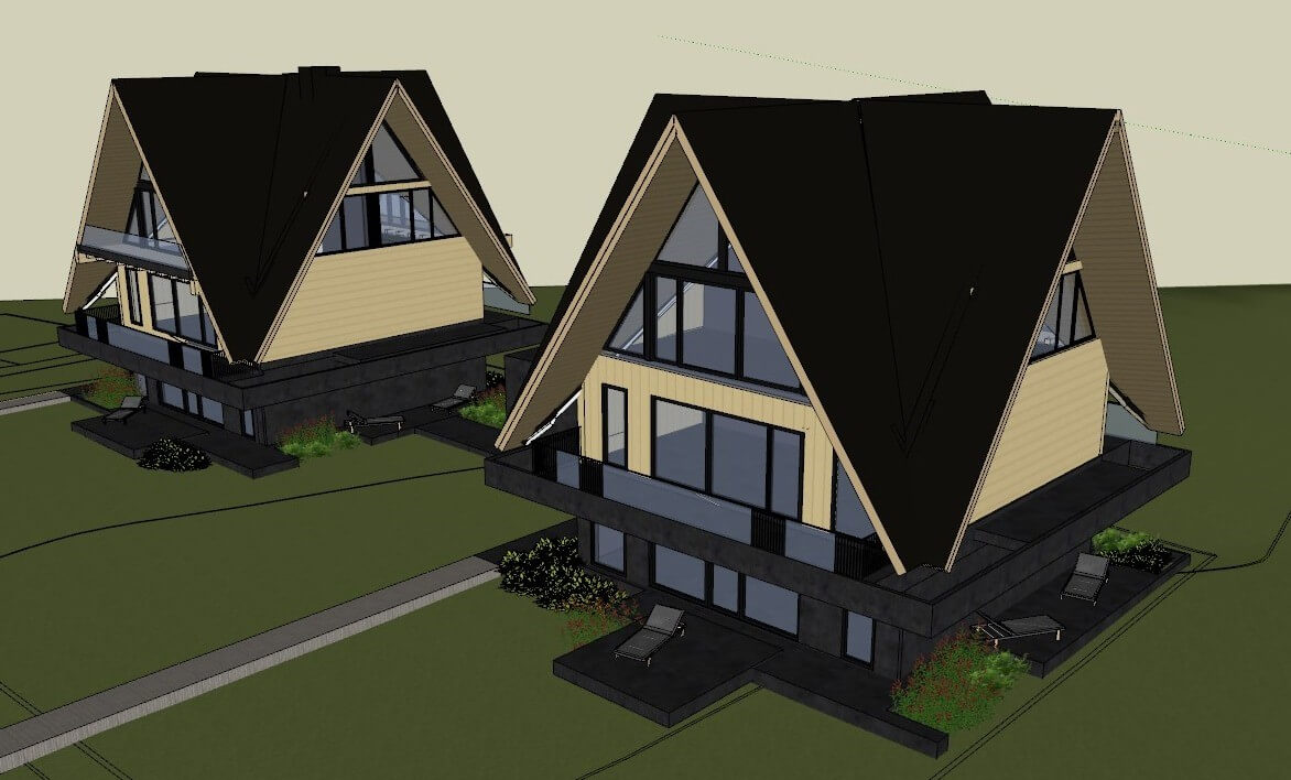Budynki mieszkalne w Bukowinie Tatrzańskiej. Ściany murowane z wzmocnieniami żelbetowymi, stropy monolityczne, więźba drewniana z wzmocnieniami stalowymi, posadowienie na ławach i stopach fundamentowych.
