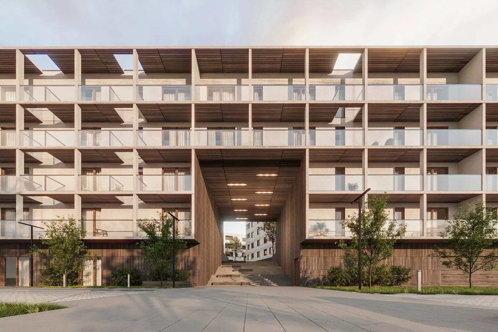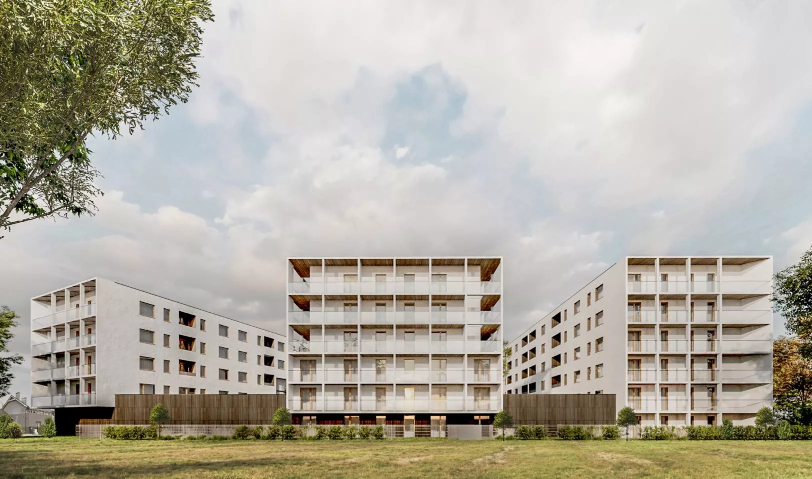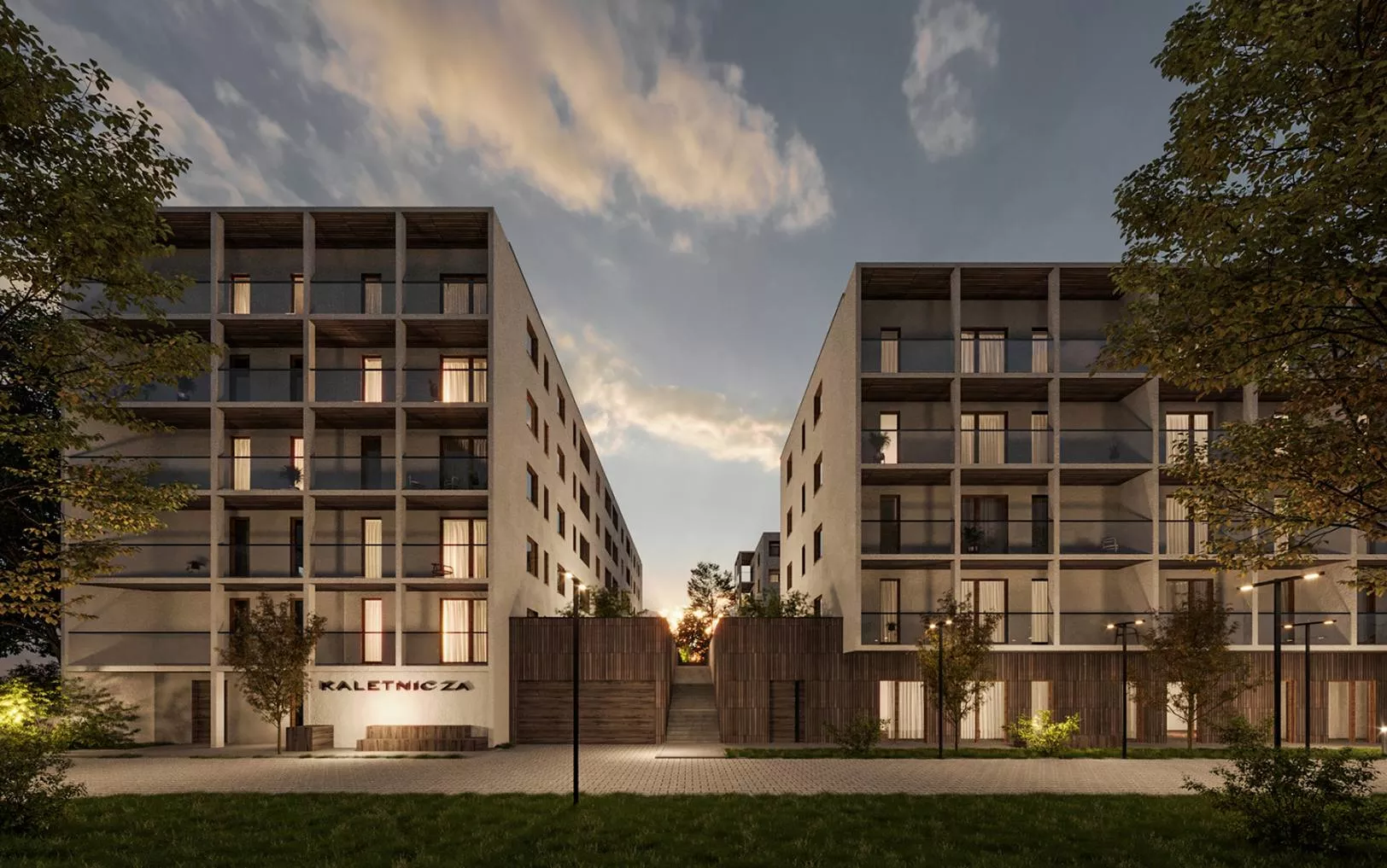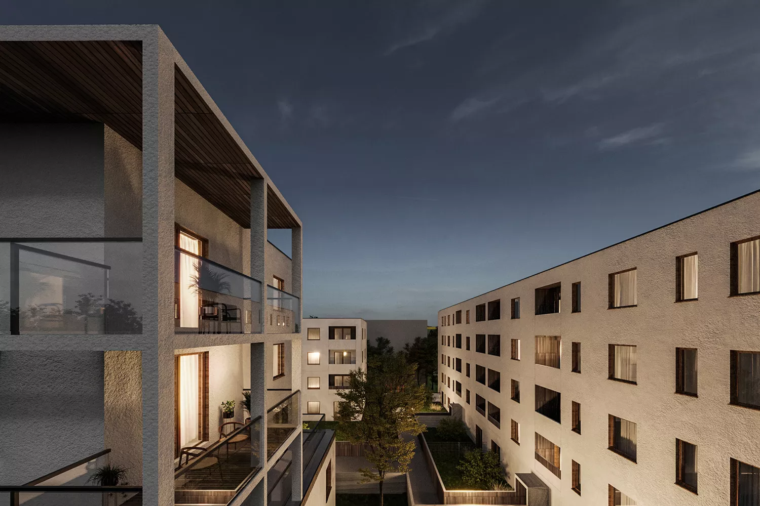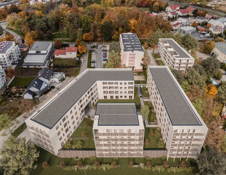 Projekt obejmuje zespół budynków mieszkalnych wielorodzinnych wraz z usługami, zlokalizowany w Lubinie.