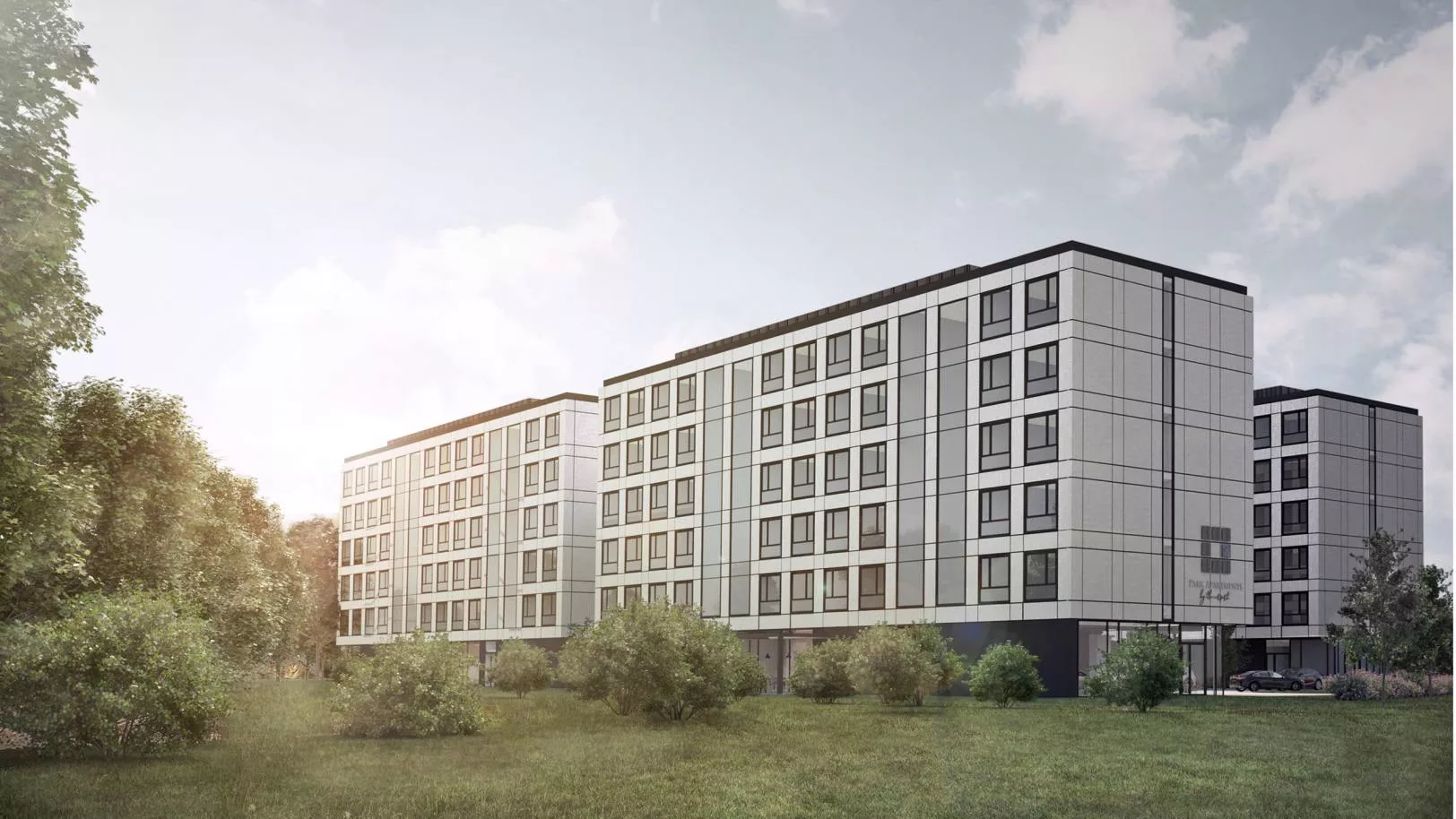Zespół czterech budynków hotelowych z częścią usługową w parterze. Konstrukcja żelbetowa w układzie belkościan w poziomie 1 piętra, na wyższych kondygnacjach układ płytowo-słupowy z lokalnymi ścianami murowanymi. Posadowienie na ławach i stopach fundamentowych.